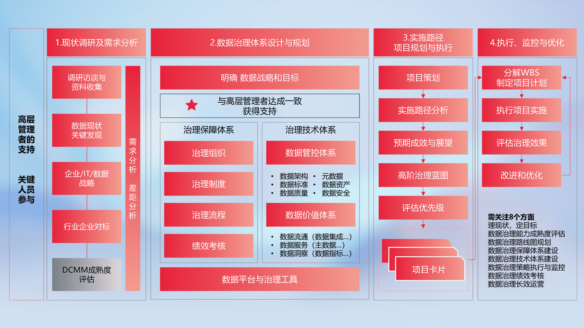 制定并执行统一的数据标准,,,规范数据定义和格式,,消除冗余和不一致性,,,,实现跨部门和跨系统的数据一致性,,,,为企业提供标准化的数据基础。。。。